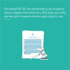Дія Закону України «Про амністію у 2016 році» не поширюється на осіб, які мають дітей і вчинили кримінальне правопорушення щодо хоча б одного з цих дітей, у звʼязку з обмеженнями, встановленими п. «г» ст. 9 цього Закону.