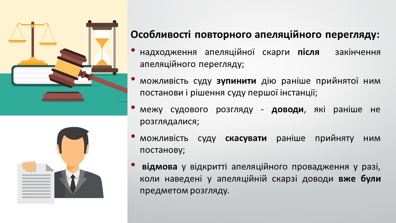 З метою напрацювання однакових підходів у даному питанні до Вашої уваги пропонується презентація «Особливості повторного апеляційного перегляду» в якій: