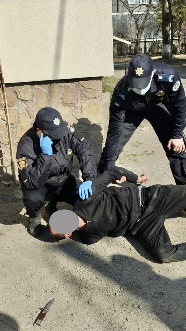 Наш співробітник почав перемовини з правопорушником і, скориставшись послабленням його уваги, застосував прийоми рукопашного бою: вибив із його руки ніж, знешкодив та надів наручники.