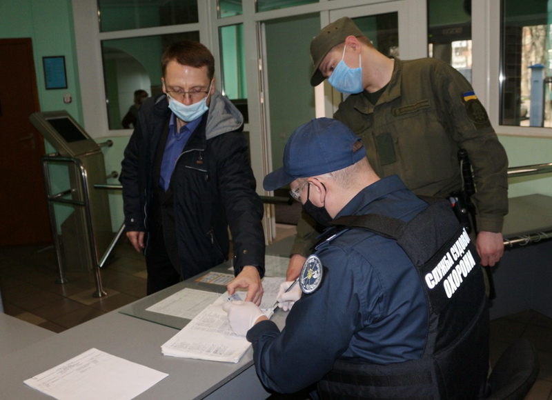 Співробітники Служби, які приступили до стажування із забезпечення охорони, безпеки та громадського порядку в судах, дотримуються заходів безпеки й несуть службу в захисних масках, окулярах та рукавичках.