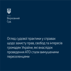 У другому аналітичному огляді судової практики у справах щодо захисту прав, свобод та інтересів громадян України, які внаслідок проведення АТО стали вимушеними переселенцями, висвітлено правові позиції, зокрема, щодо: