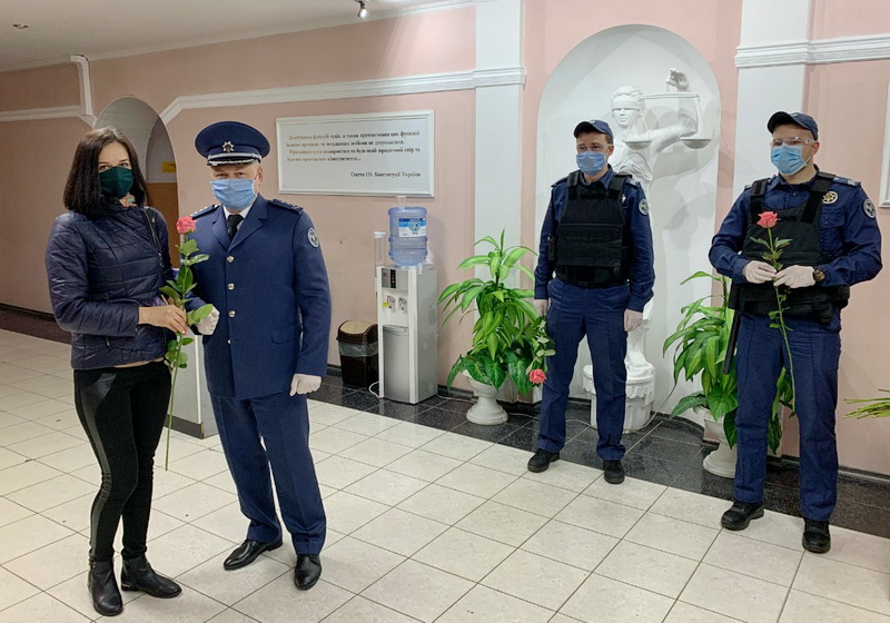 За доброю традицією Служби судової охорони усім працівницям суду співробітники Служби подарували квіти.