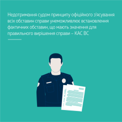 Враховуючи наведене, Верховний Суд дійшов висновку, що недотримання судом принципу офіційного з’ясування всіх обставин справи під час дослідження зібраних у справі доказів унеможливлює встановлення фактичних обставин для правильного її вирішення.