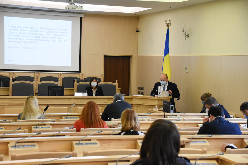 16 квітня 2020 року збори суддів Верховного Суду в Касаційному адміністративному суді внесли зміни до персонального складу судових палат. Рішення ухвалені у зв’язку з виходом у відставку судді ВС в КАС Ірини Саприкіної (рішення Вищої ради правосуддя від 9 квітня 2020 року № 923/0/15-20).
