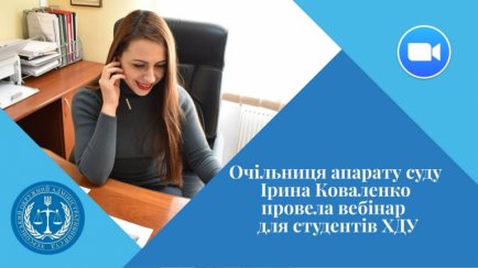 Виклик сьогодення прийняла керівниця апарату Херсонського окружного адміністративного суду Ірина Коваленко, яка в рамках проходження практики провела для студентів вебінар на таму: «Здійснення адміністративного судочинства під час карантину».