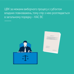 ЦВК за межами виборчого процесу є суб’єктом не виборчого процесу, а владних повноважень, тому позов до неї має розглядати місцевий адмінсуд.