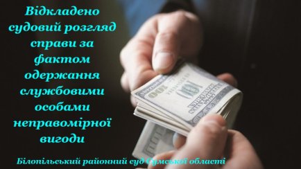 Через неявку в судове засідання одного з потерпілих на 10:00 годину 5 червня 2020 року відкладено судовий розгляд справи за обвинувальним актом стосовно колишніх начальника Білопільського районного виробничого відділу Сумської регіональної філії ДП «Центр Державного земельного кадастру» Б., першого заступника голови Білопільської районної державної адміністрації Г., а також голови Куянівської сільської ради Білопільського району Сумської області П., заступника директора СТБ «Сумиагропромбіржа» Ш.