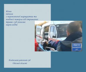 Приблизно о 08:00 в с. Нерубайське Біляївського району Одеської області, на заокругленій ділянці проїзної частини на відстані близько 200 м. від зупинки «площа партизанів», стояча пасажирка В. не втримала рівновагу та впала на двері «аварійного виходу», а саме на ручку замкового пристрою, який під натиском ваги її тіла відчинився, внаслідок чого потерпіла випала з автобусу та отримала тілесні ушкодження від яких 14 листопада 2018 року померла.
