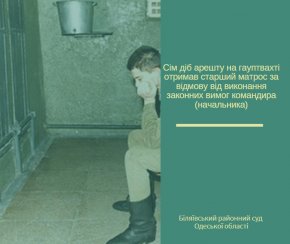 1 червня 2020 року суддя Біляївського районного суду Одеської області, розглянувши матеріали, які надійшли від Військової частини А0216, визнав громадянина В. винним у скоєнні адміністративного правопорушення передбаченого частиною другою статті 172-10 Кодексу України про адміністративні правопорушення (відмова від виконання законних вимог командира (начальника), вчинене в умовах особливого періоду) та застосував до нього адміністративне стягнення у вигляді арешту з утриманням на гауптвахті строком на 7 діб.