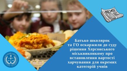 До Херсонського окружного адміністративного суду надійшла позовна заява батька двох школярок та Громадської організації «Національний Конгрес Батьків України», в які вони просять визнати протиправним та нечинним рішення Виконавчого комітету Херсонської міської ради від 20.08.2019 №303 «Про вартість харчування для окремих категорій учнів у закладах загальної середньої освіти міста з 01.01.2020».