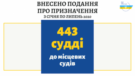 Вища рада правосуддя впродовж перших семи місяців 2020 року прийняла рішення про внесення Президентові України подання про призначення на посади 440 суддів до місцевих загальних судів, двох суддів – до місцевих господарських судів, одного судді – до місцевого адміністративного суду.