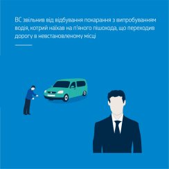 Касаційний кримінальний суд у складі Верховного Суду розглянув касаційну скаргу захисника водія, засудженого за порушення правил безпеки дорожнього руху, що спричинило заподіяння тяжкого тілесного ушкодження пішоходу (ч. 2 ст. 286 КК України), до 3 років позбавлення волі з позбавленням права керувати транспортними засобами на 1 рік 6 місяців.