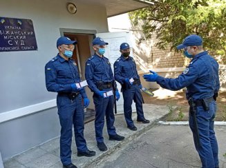 Також зі співробітниками Служби, які заступили на стажування, проведені спеціальні інструктажі на місцях несення служби, зокрема щодо забезпечення пропускного режиму та безпеки, дотримання карантинних обмежень. Варто додати, що всі судові охоронці, які здійснюють охорону та підтримують громадський порядок в установах системи правосуддя Луганської області, несуть службу в захисних масках, окулярах та рукавичках.