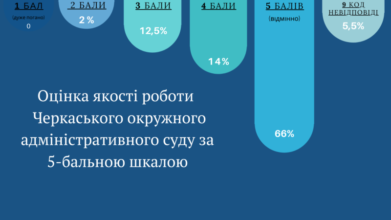 З 24 червня по 14 серпня 2020 року в Черкаському окружному адміністративному суді проводилось добровільне анонімне опитування громадян щодо задоволеності якістю функціонування суду. За результатами проведеного анкетування в цілому суд отримав позитивну оцінку.