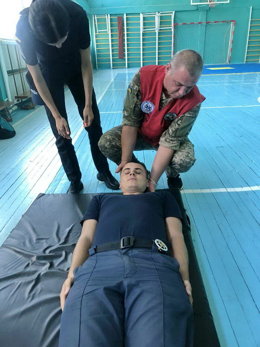 Також слухачі на практиці відточували знання з домедичної допомоги, зокрема вчилися правильно транспортувати людину з травмою хребта.