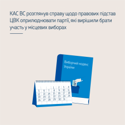 Суд керувався нормами ст. 217 Виборчого кодексу України, якими врегульовано, що копія рішення вищого керівного органу партії про участь її місцевих організацій у відповідних виборах, засвідчена підписом керівника та печаткою партії, не пізніш як за 48 днів до дня голосування подається до ЦВК. ЦВК не пізніш як за 45 днів до дня голосування оприлюднює перелік цих політичних партій на своєму офіційному вебсайті. Строки, визначені у цьому Кодексі, обчислюються в календарних днях, останнім днем обчисленого у днях строку, який відповідно до цього Кодексу має закінчитися у зв’язку з настанням певної події, є день, що передує дню вказаної події (частини 1, 4 ст. 4 Виборчого кодексу України).