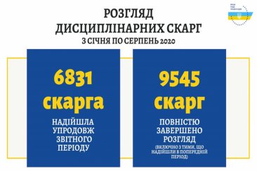 Протягом січня – серпня 2020 року до Вищої ради правосуддя надійшла 6831 скарга щодо дисциплінарного проступку судді (за аналогічний період 2019 року – 6453 скарги).