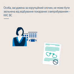 Звільняючи особу, котру визнано винуватою у вчиненні корупційного злочину, від відбування покарання з випробуванням на підставі ст. 75 КК України, суд апеляційної інстанції неправильно застосував закон України про кримінальну відповідальність.