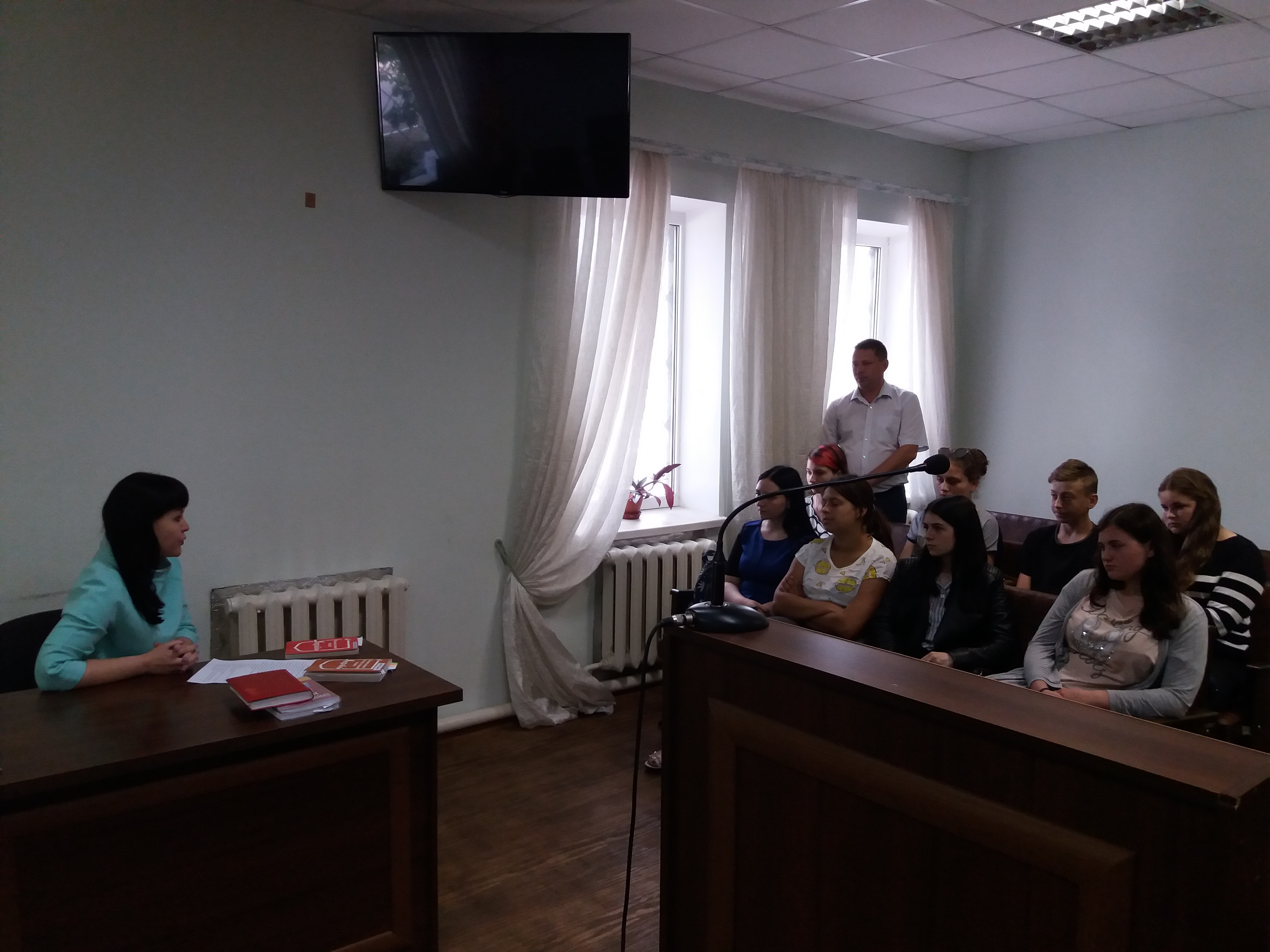 Після закінчення судового засідання голова суду Пустовар О.С. розповіла учням про злочинність неповнолітніх, особливості кримінальної відповідальності неповнолітніх, наслідки та вплив на подальше життя дитини.
