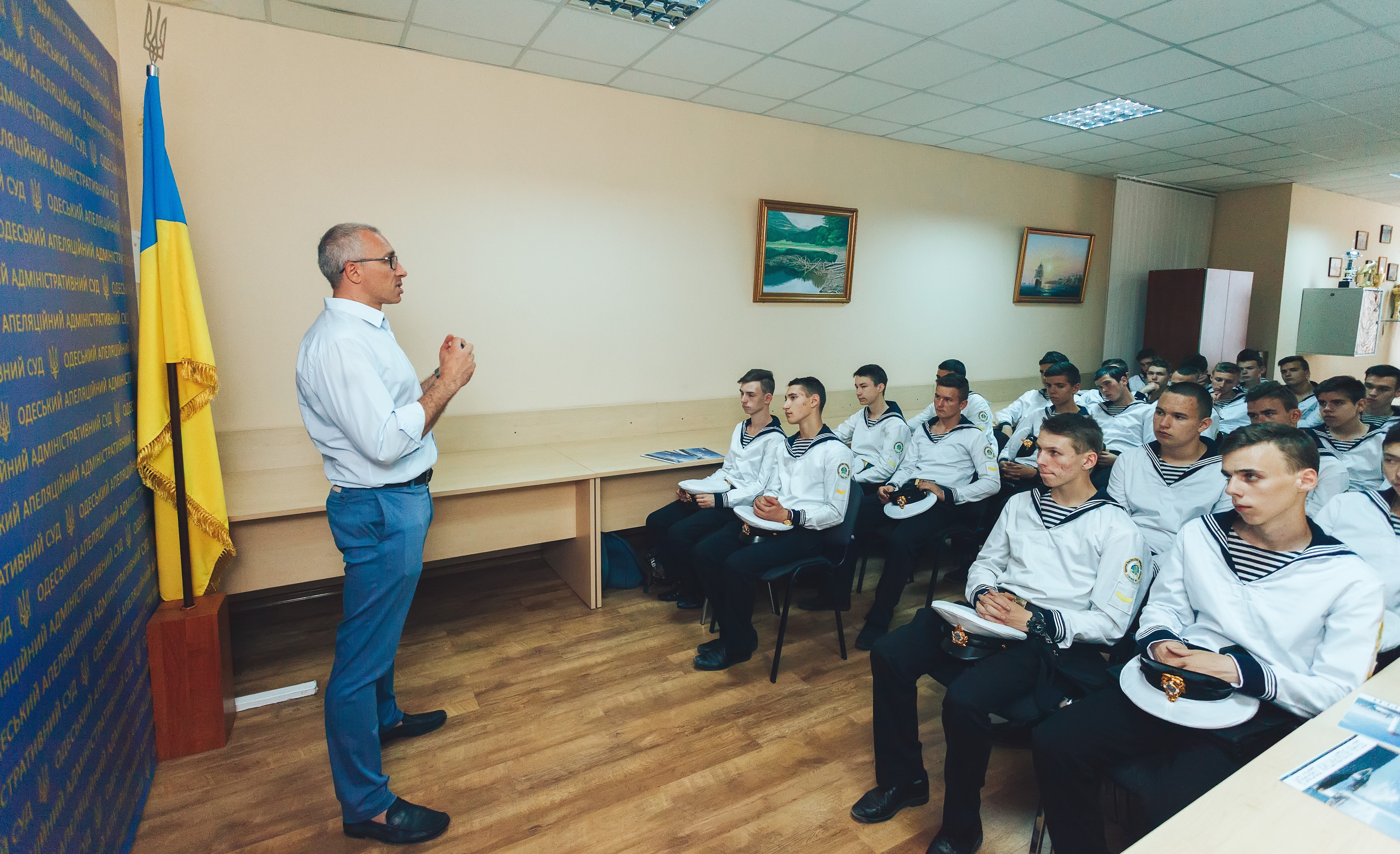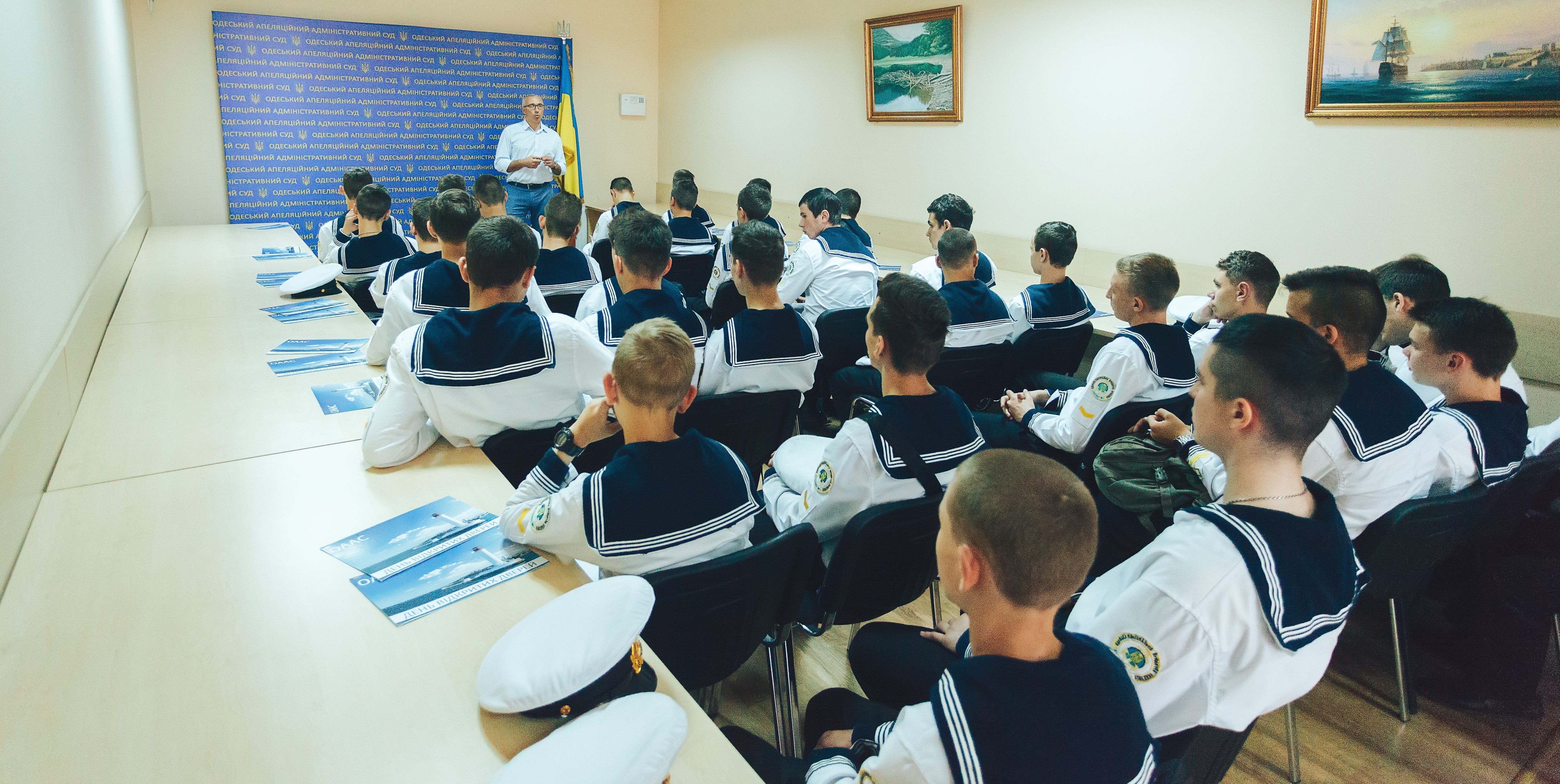 Сьогодні в Одеському апеляційному адміністративному суді відбувся День відкритих дверей. Суд зустрічав майбутніх моряків - курсантів Училища № 3 НУ "ОЮА". В сучасних умовах, створюючи діалог між судовою владою і суспільством, наша установа бере активну участь у світоглядному формуванні особистостей. Саме ці наймолодші спеціалісти морського профілю невдовзі приймуть глобальні виклики щодо підвищення іміджу України як морської держави та конкурентоспроможності портової галузі Південного регіону.