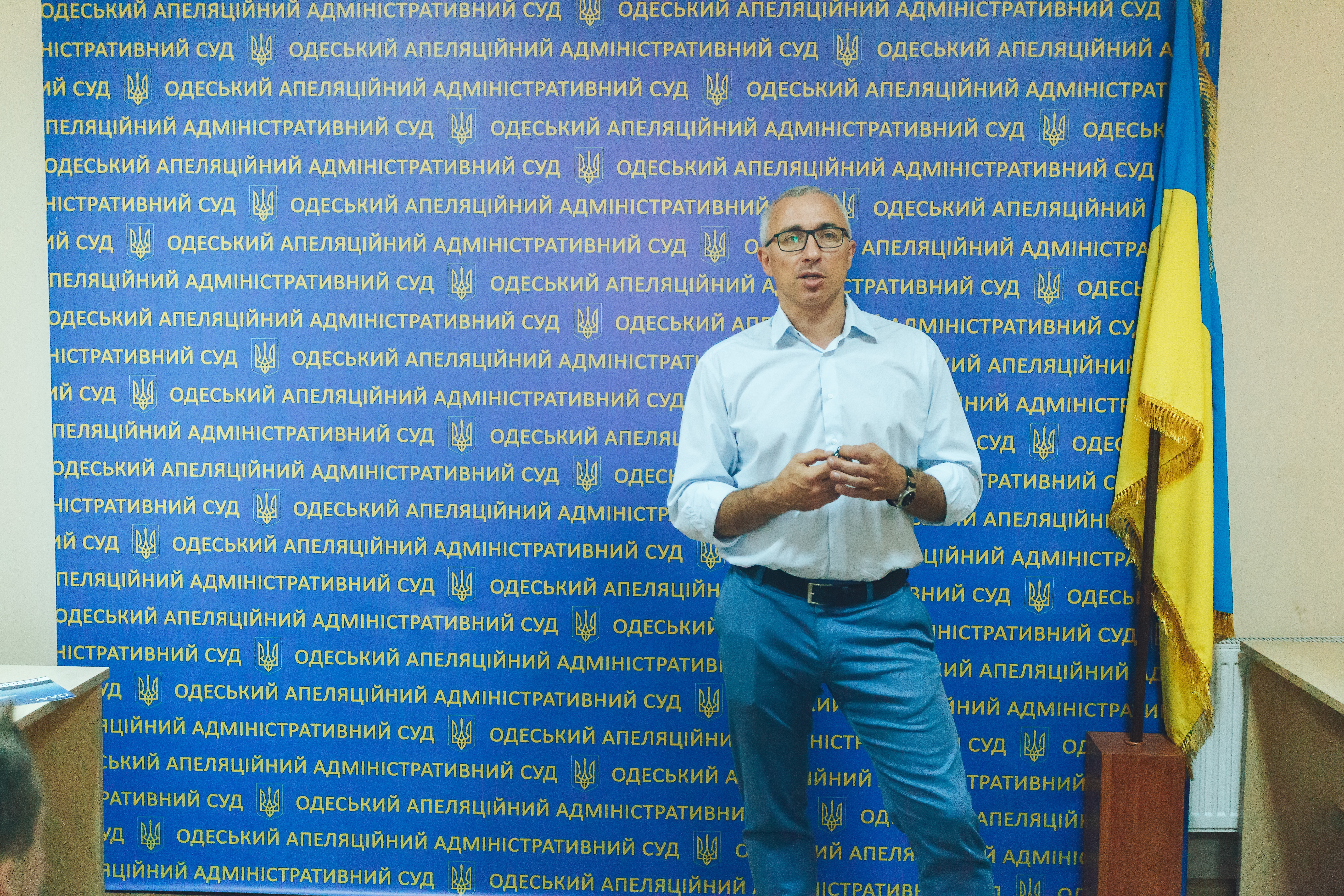 Зустрічав гостей заступник голови суду, суддя-спікер Олександр Джабурія. Відкриваючи захід, він зазначив: " Сьогодні ми проводимо День відкритих дверей у дещо незвичному форматі для суду. Ми ознайомимо Вас з організацією роботи апеляційного адміністративного суду, проведемо екскурсію будівлею суду, оглянемо зали судових засідань. Але, я маю надію, що наша з Вами зустріч стане одним з камінців підґрунтя становлення і подальшої соціалізації Вас як збалансованих особистостей, знаючих свої обов`язки, здатних нести відповідальність за свої дії і розуміючих, що права однієї людини закінчуються там, де починаються права іншої. І саме це є мірою свободи кожного".