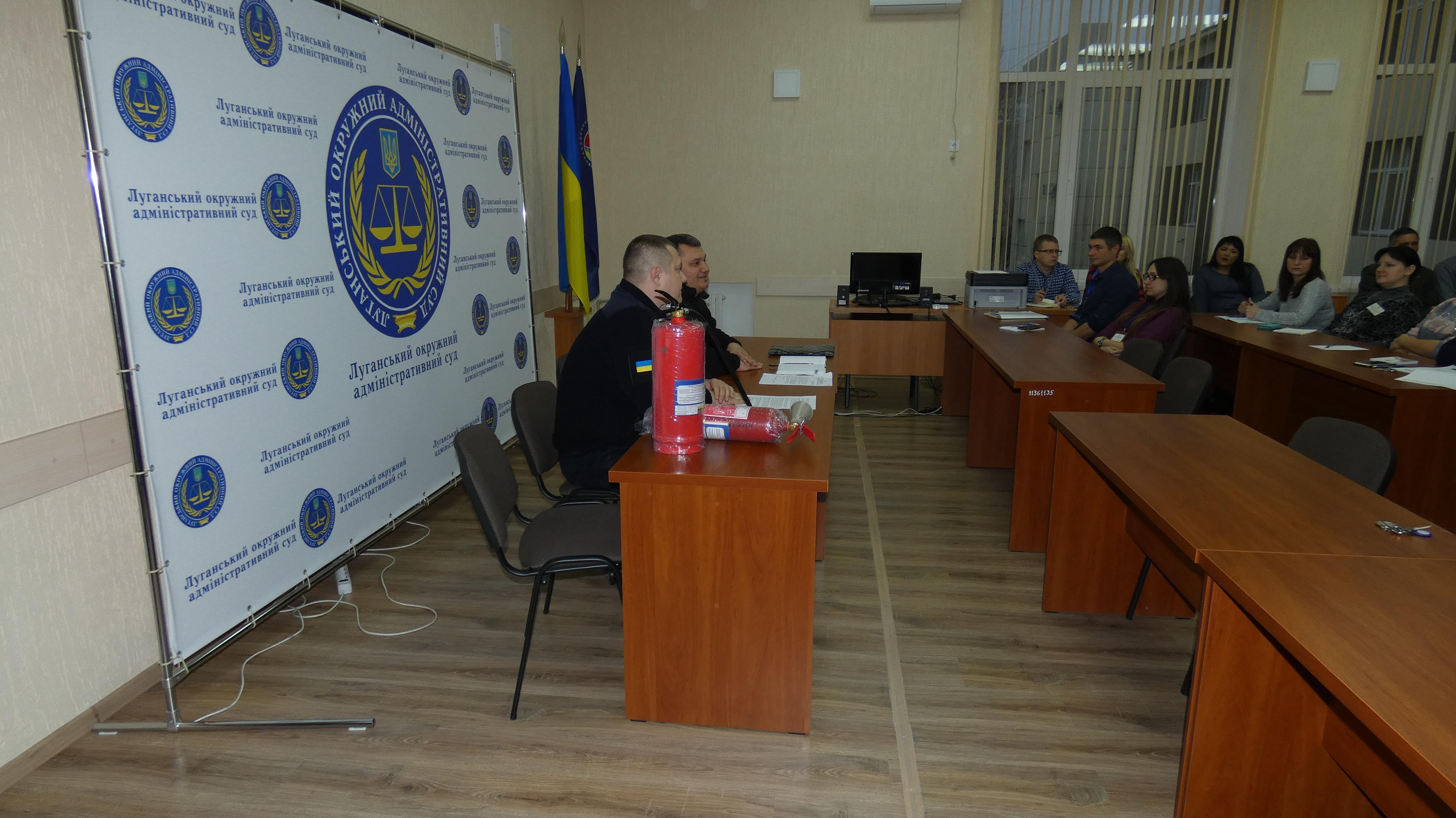 26 листопада 2018 року у Луганському окружному адміністративному суді пройшли заняття щодо дій і поведінки суддів та працівників апарату суду у випадках надзвичайних подій або ситуацій, а саме, у разі виникнення пожежі.