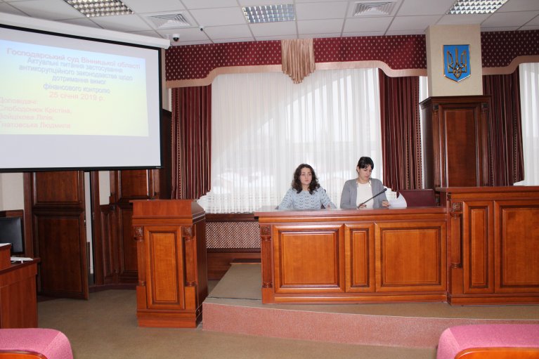 25 січня 2019 року в господарському суді Вінницької області для державних службовців суду було проведено навчальне заняття на тему: «Актуальні питання застосування антикорупційного законодавства щодо дотримання вимог фінансового контролю».