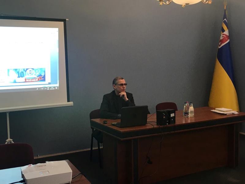 Лектором виступив Геннадій Геннадійович Пампуха - керуючий партнер ТОВ «НІСЕ»- міжнародний експерт права, арбітражу і експертизи, судовий експерт за фахом 10.18 «Електротехнічна експертиза», адвокат, медіатор, міжнародний арбітр, бізнес-тренер, автор і розробник законопроектів, Президент міжнародної неприбуткової асоціації «Європейська арбітражна палата» (м. Брюссель, Бельгія), член Правління інвестиційно-консалтингового центру I.D.C. (м. Лодзь, Польща).