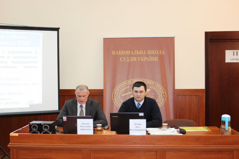 Сьогодні в Одеському регіональному відділенні Національної школи суддів України заступником голови Одеського апеляційного суду Олександром Джулаєм та суддею Одеського апеляційного суду, кандидатом юридичних наук Олегом Копіцею для слухачів спеціальної підготовки був проведений тренінг, присвячений актуальним питанням процессу доказування та доказам в кримінальному судочинстві.