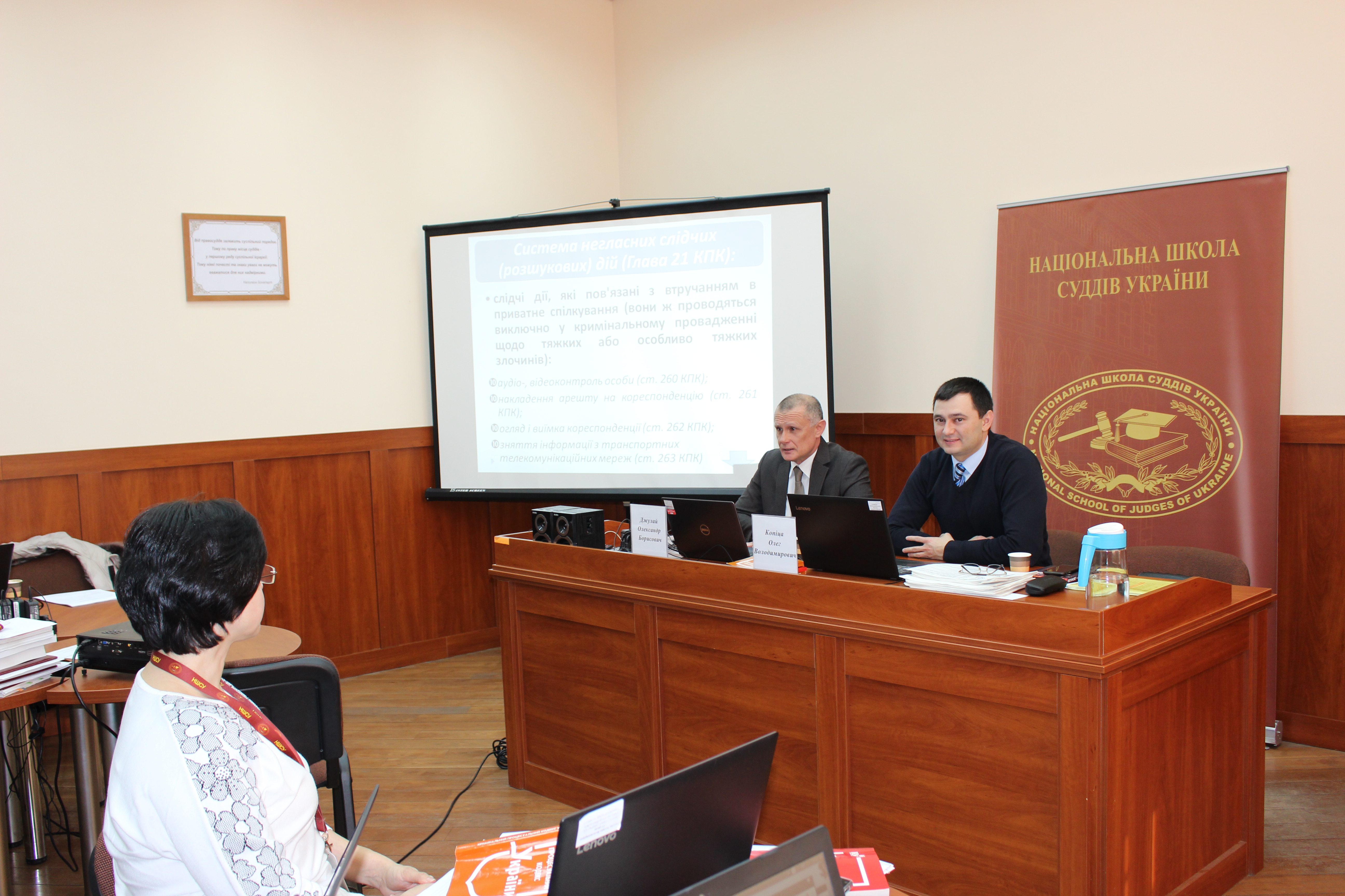 Під час проведення тренінгу слухачам за допомогою інтерактивних методів підготовки: презентацій Power Point, практичних завдань, експрес–опитувань за допомогою електронної системи клікерів були розкриті сутність і значення кримінально-процесуального доказування, предмет, межі та суб’єкти доказування у кримінальному процесі, види і джерела доказів у кримінальному судочинстві.
