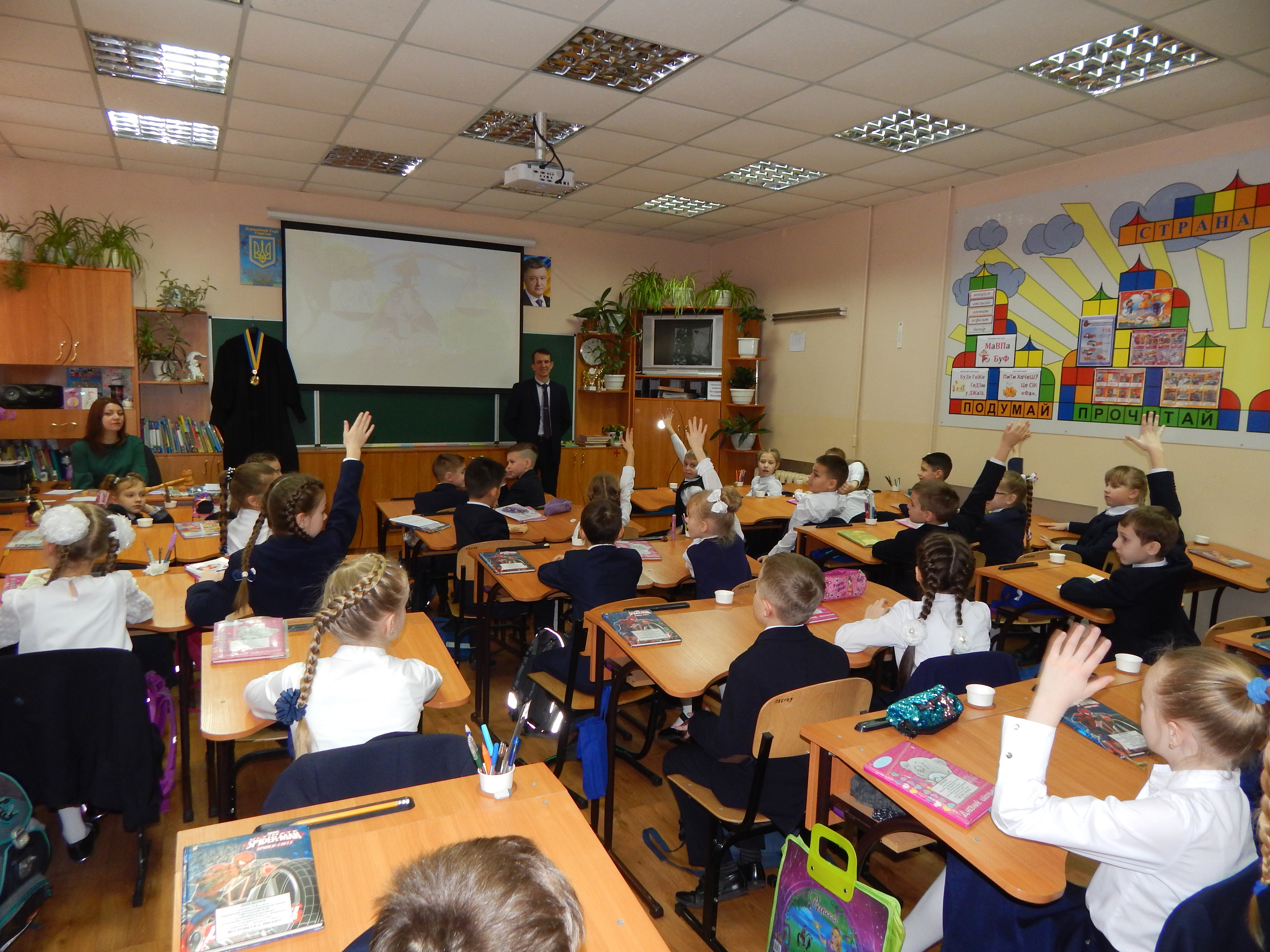 Під час уроку відбулась презентація мультфільму «Кінь проти хом’яка», знятого в рамках грантового проекту «Підвищення обізнаності дітей з діяльністю судів» за підтримки Програми USAID «Нове правосуддя».
