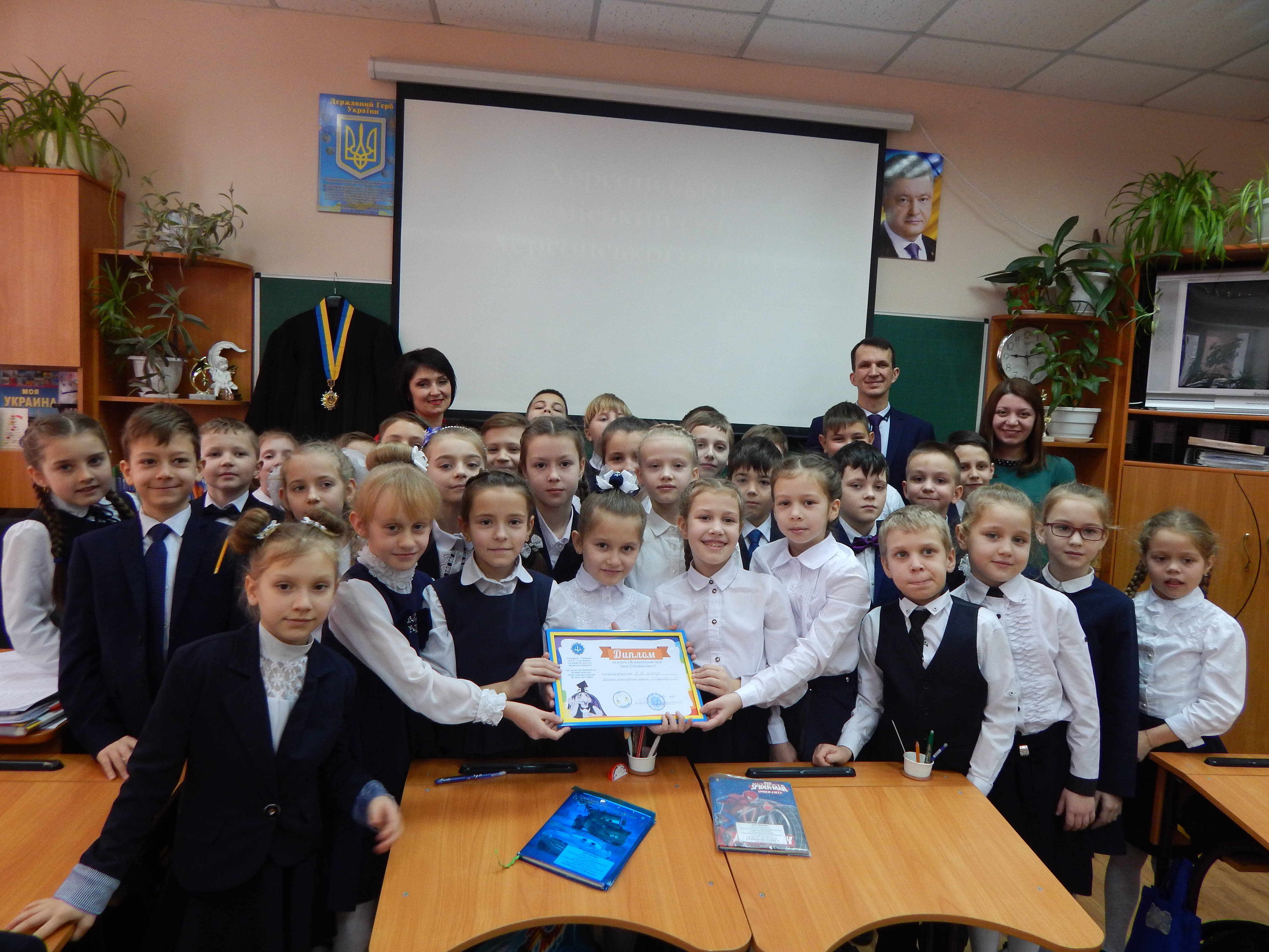 По завершенню уроку, школярі подякували за цікавий урок, а заступник керівника апарату вручив диплом за активну участь у Всеукраїнській акції «Урок справедливості».