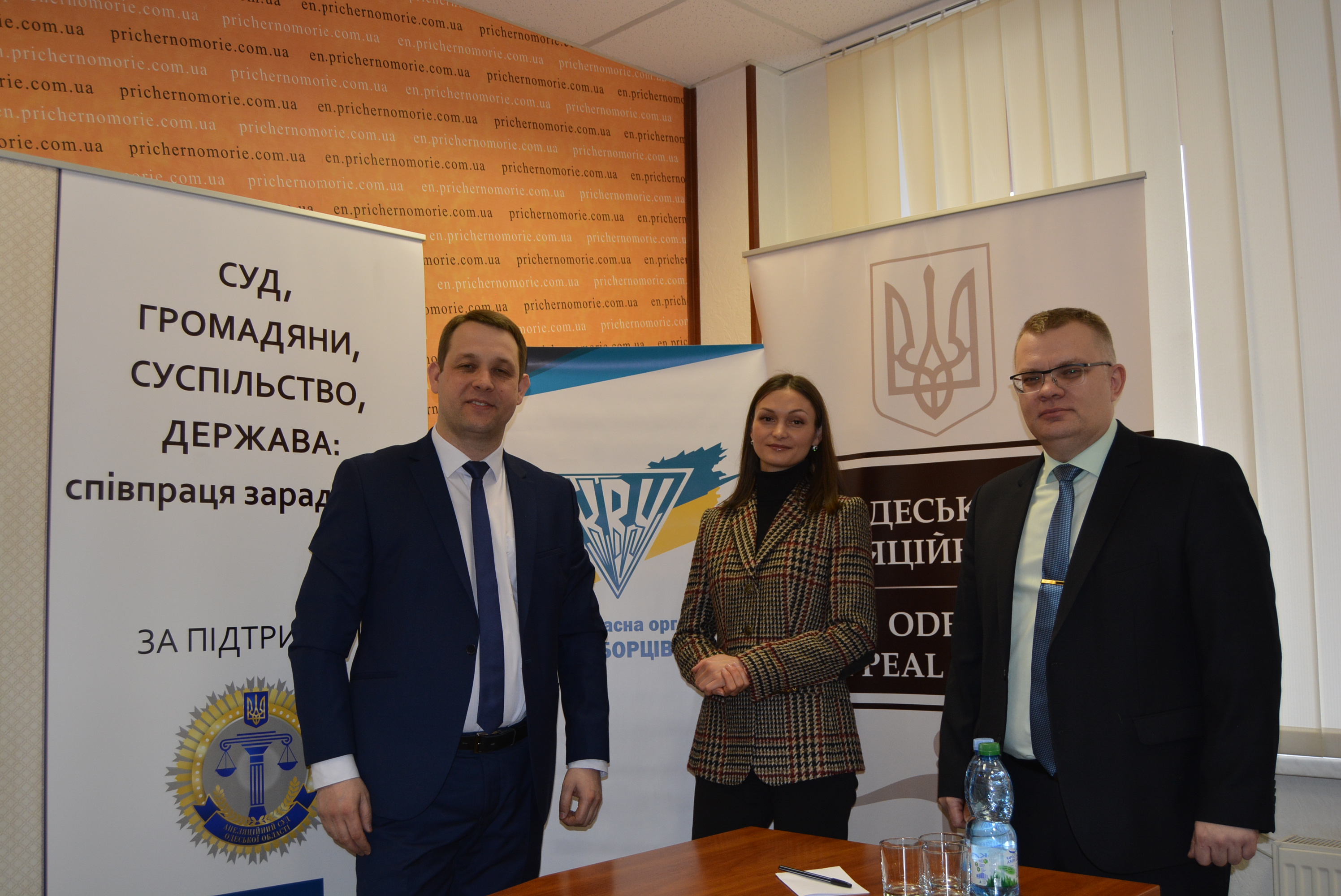 Спікери заходу: заступник голови апеляційного суду Одеської області Андрій Дрішлюк, суддя Очаківського міськрайонного суду Миколаївської області Тетяна Шевиріна, голова Одеської обласної організації ВГО «Комітет виборців України» Анатолій Бойко розповіли про мету проекту, поділились першими здобутками, якими стала розробка правил організації ефективного цивільного судочинства, а також окреслили напрямки своєї подальшої діяльності в межах реалізації проекту.