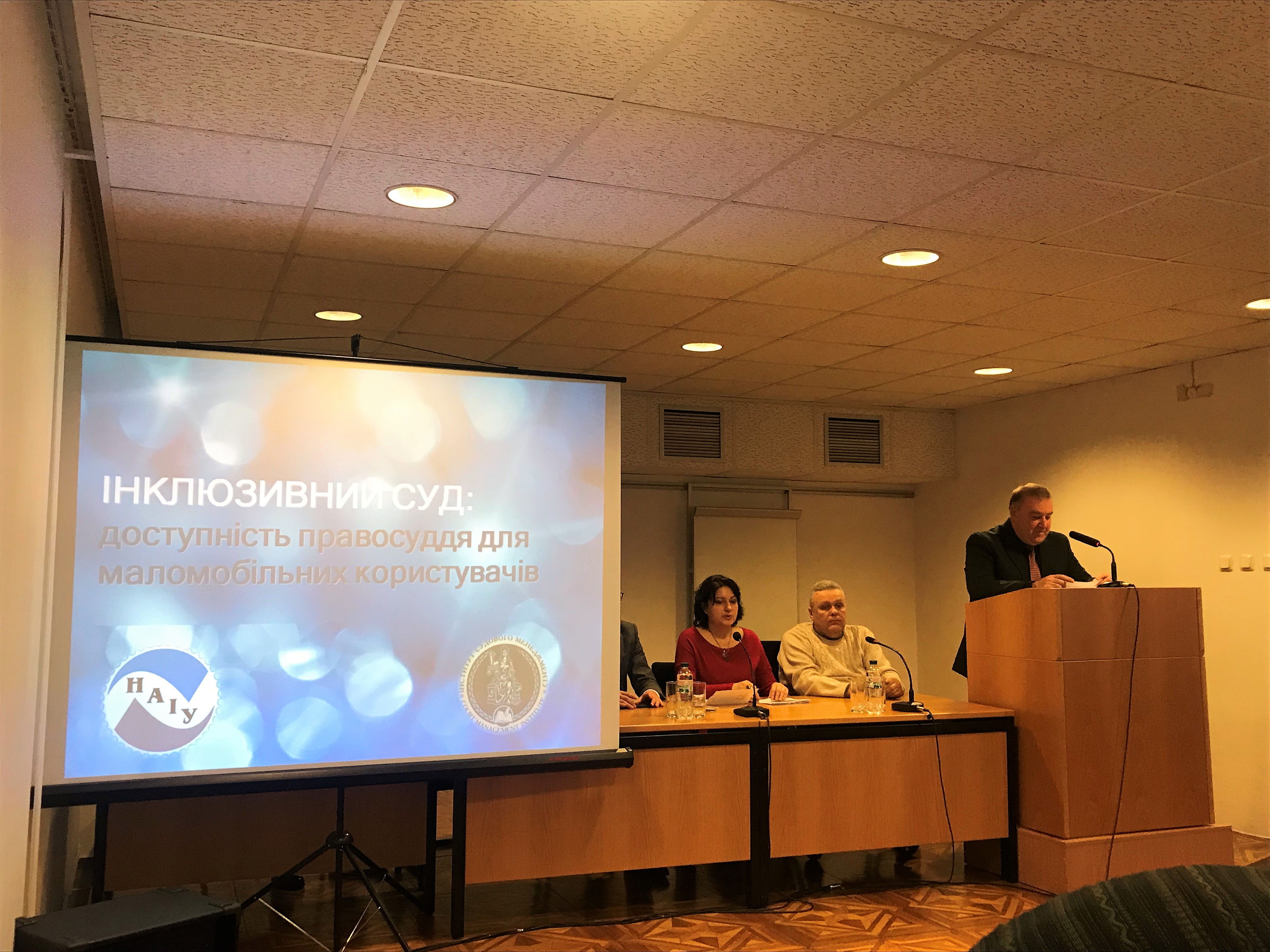 Захід розпочав вітальним словом голова Житомирського апеляційного суду Юрій Жизнєвський. Далі у своєму виступі він наголосив, що широке коло проблем, які вимагають свого вирішення для того, щоб надати можливість кожній людині відчувати себе повноцінним членом суспільства та вільно користуватися соціальною інфраструктурою, включає в себе й забезпечення безперешкодного доступу до правосуддя людей з інвалідністю.