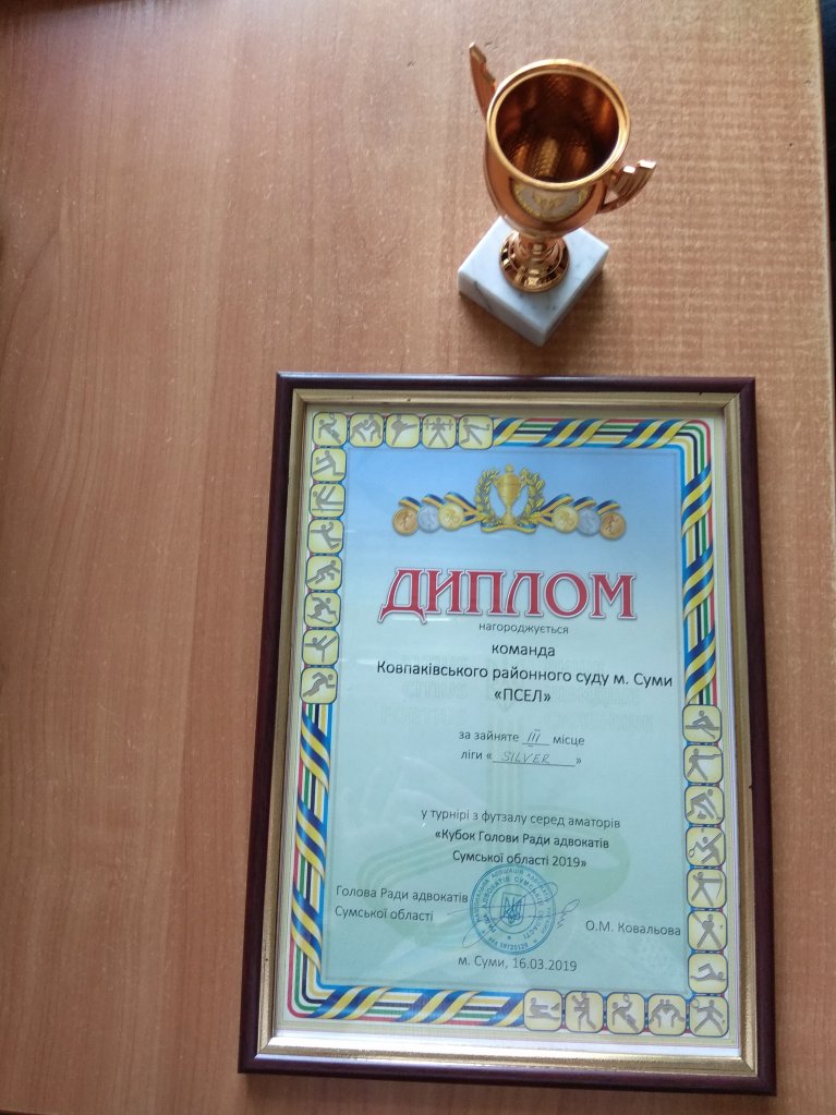 Команда Ковпаківського районного суду міста Суми «Псел» 16 березня 2019 року взяла участь у змаганнях з футболу за "Кубок Голови Ради адвокатів Сумської області 2019"