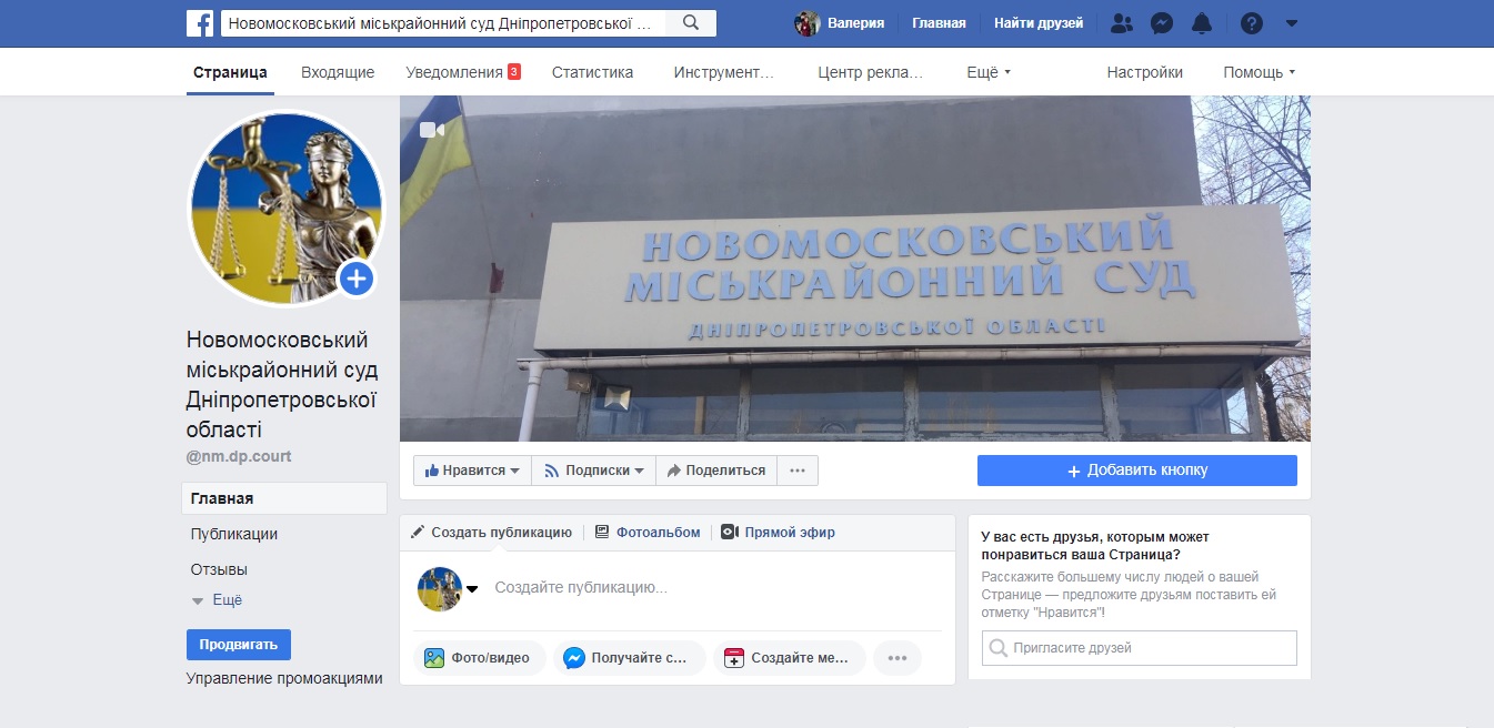 З метою забезпечення зручного та оперативного перегляду останніх новин, оголошень та повідомлень про діяльність Новомосковського міськрайонного суду Дніпропетровської області створено сторінку у соціальній мережі Facebook за посиланням https://www.facebook.com/nm.dp.court