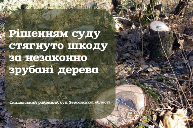 25 березня 2019 року Скадовський районний суд Херсонської області розглянув позов Державного підприємства «Скадовське досвідне лісомисливське господарство» про стягнення шкоди з громадянина, який незаконно зрубав сухостійні дерева.