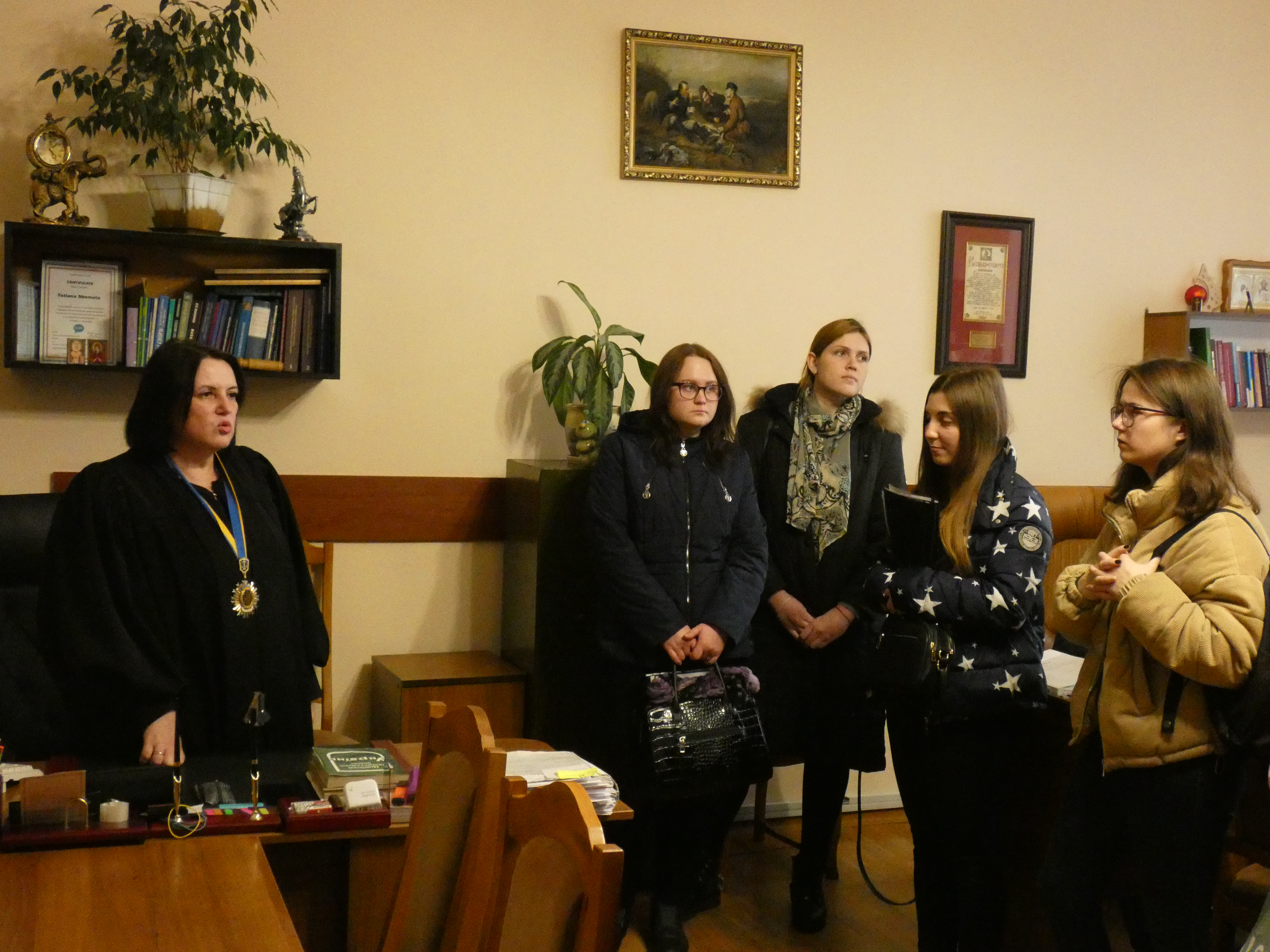 Побували четвертокурсники і в суддівському кабінеті, і в залах, де розглядають кримінальні справи. Побачили раритетні судові меблі, виготовлені більше 70 років тому.