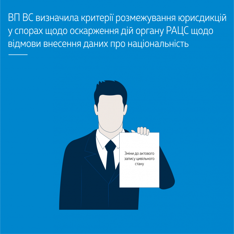 У позовній заяві немає доводів щодо неправомірності вказаної відмови відповідача, а є лише вимога позивача зобов’язати відповідача внести зміни до актового запису. Позивач звернувся до суду для захисту права на забезпечення органом державної влади особистого немайнового права та мав намір вирішити питання про внесення змін щодо національності його батька у запис, що вже існує. Отже, спір у цій справі не має ознак публічно-правового та підлягає розгляду за правилами цивільного судочинства.