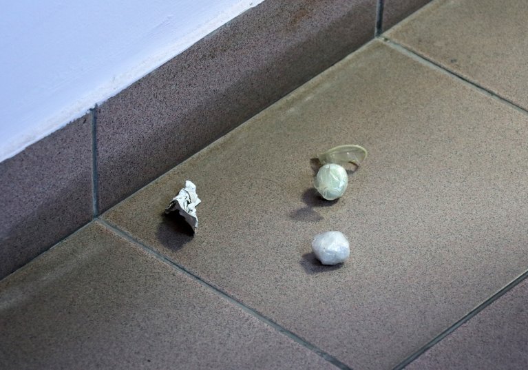 В цей момент вони помітили, що один із відвідувачів намагався передати обвинуваченому декілька згортків із порошкоподібною речовиною (схожою на наркотичну).
